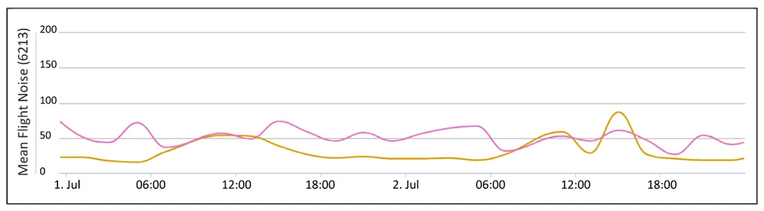 Flight and fanning noise at the hive entrance for a two-day period as captured and displayed by Arnia’s system.