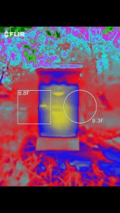 A recent addition to the colony monitoring sensor set is the infra-red camera. These usually combine the images from both a standard digital camera and an infra-red camera so that the heat sources seen in the infra-red image appear within the standard image, which is usually depicted in outline. The uses of infra-red camera in beekeeping are still being discovered, but typically they are used to find the location of the winter cluster in the hive and to find the precise location of a colony when removing a colony from a building.